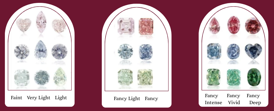 The Gemological Institute of Americal (GIA) developed an intensity grading scale in order to categorize the intensity levels in the diamond. The nine grades in the scale are the following: